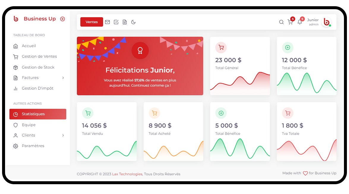 Vous tout gérer, même en déplacement, suivre les performances et rester connecté avec votre équipe, le tout avec une expérience fluide et intuitive. Plus besoin de compromis entre fonctionnalité et mobilité. Avec notre design réactif, restez aux commandes où que vous soyez, et gardez votre entreprise à portée de main, à tout moment.